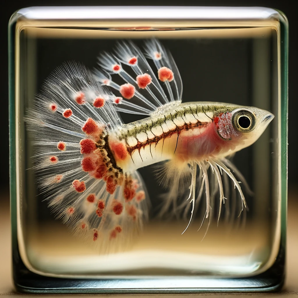 아가미 흡충은 기생 편형동물( Dactylogyrus spp.) 에 의해 발생합니다 . 열악한 수질과 스트레스는 감수성을 증가시킬 수 있습니다.