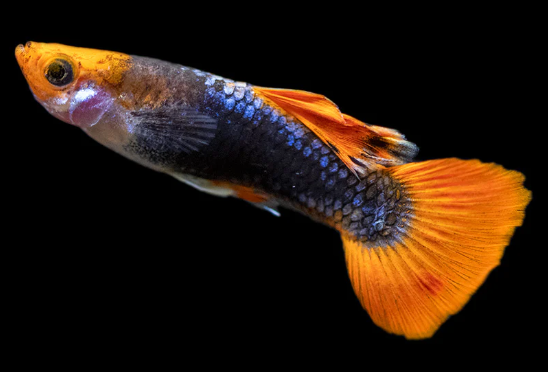 색상: 모스코바 구피는 깊고 단색으로 유명하며, 종종 파란색, 녹색 또는 검정색을 띕니다.