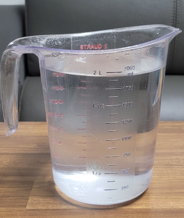 1. 수돗물 2L (주의점은 온도는 수조온도로 맞추어야 하며 기존 어항물은 사용 금지, 다른 약품 혼합사용 절대 금지)
